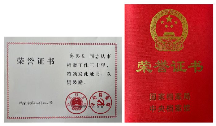 我校档案馆廖昌兰老师荣获国家档案局、中央档案馆联合颁发的“从事档案工作30年”荣誉证书。